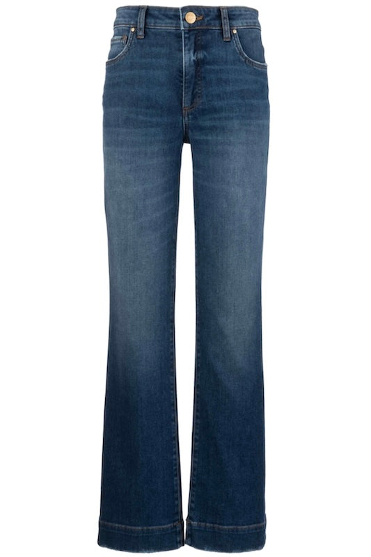 Discover your most flattering fit with the Kelsey High Rise Fab Ab Ankle Flare Jeans in cool dark wash.