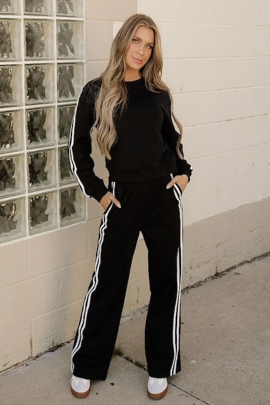 ELEVATED COMFORT VARSITY PULLOVER WIDE LEG PANT & TOP SET