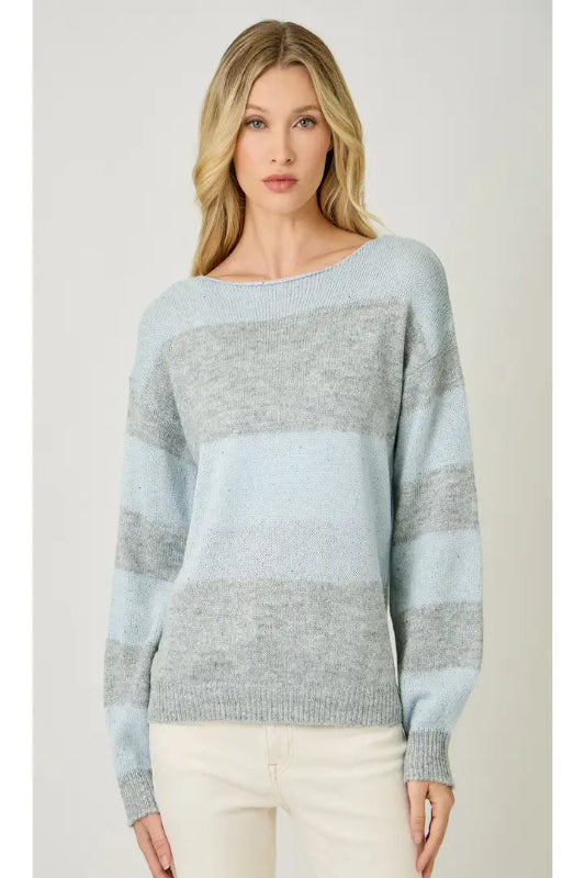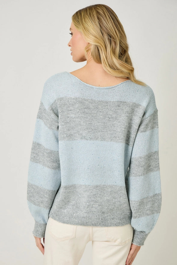Soft hues and subtle sparkle make this Color Blocked Sequins Sweater the perfect mix of cozy and chic. Designed with a flattering boat neckline and elegant bubble sleeves, this sweater shines with understated sequins woven throughout for a touch of shimmer that catches the light just right.