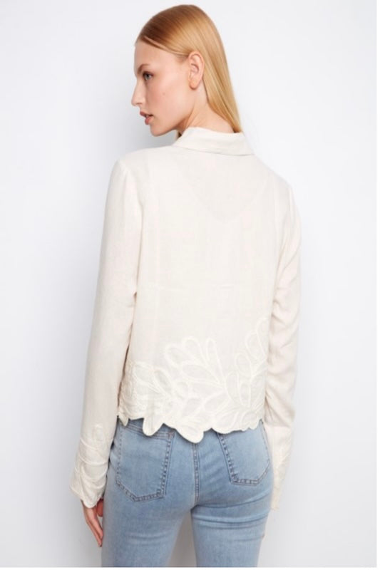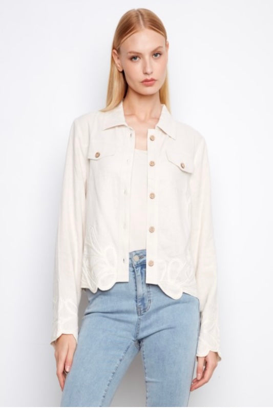 POLISHED CASUAL EMBROIDERED HEM LINEN BLEND JACKET