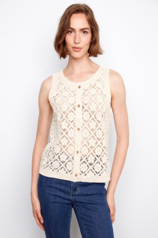 AIRY AND CHIC CROCHET BUTTON UP SLEEVELESS VEST