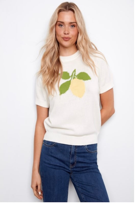 Add a playful touch to your wardrobe with this charming cotton knit sweater featuring a bold jacquard lemon motif. The soft, breathable cotton construction offers lightweight comfort, while the relaxed raglan sleeves provide easy movement and a flattering fit. This delightful piece combines classic knitwear styling with whimsical detail for effortless everyday charm.